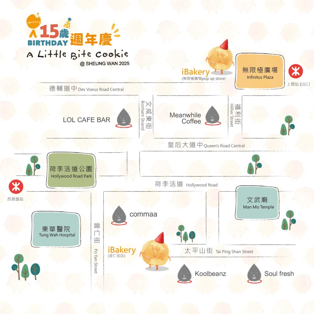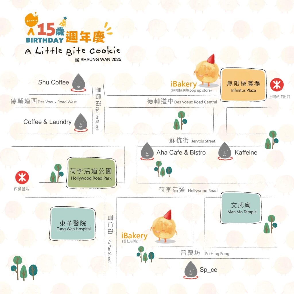 為慶祝 iBakery15周年,我哋邀請咗上環10間cafe參與我哋曲奇巡禮嘅活動,一齊分享喜悅🎉每到指定cafe消費一杯飲品,即免費送你由iBakery不同能力嘅同事手工製作嘅曲奇:七款口味隨機派發,送完即止😋